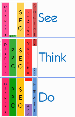 A strong marketing strategy drives home your organizations value proposition. Align your marketing strategy for what each cluster is great at and understand the benefits and limitations of each channel. Paid search is amazing for targeting users in the “Do”, but might not work for your largest audience “See”, who don’t have the commercial intent yet. Display can be a great strategy for any cluster when done properly. It can be used as a content driver for “See” and again as remarketing tactic for “Do!”