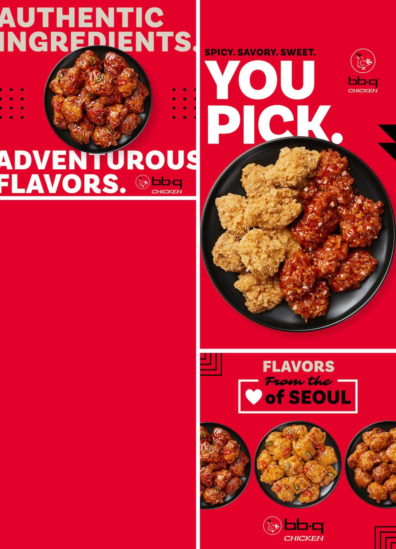 bb.q Chicken—which stands for “best of the best quality”, not barbecue—is a big deal in Korea, but they needed an American agency to help position the Seoul-based brand for success in the states. We delivered a new identity, complete with new taglines, visual identity, and around-the-clock marketing support, to help this fast-growing franchise find their stride in the world’s most competitive market.